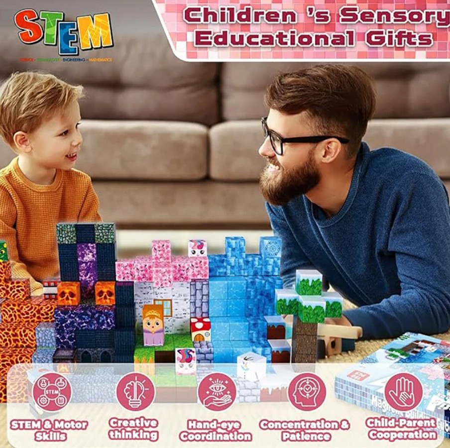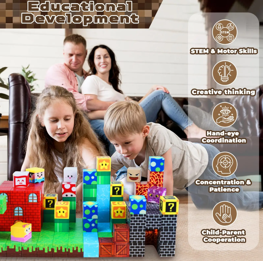 Kids can build endless 3D worlds, improving problem-solving and spatial thinking through fun, hands-on play.